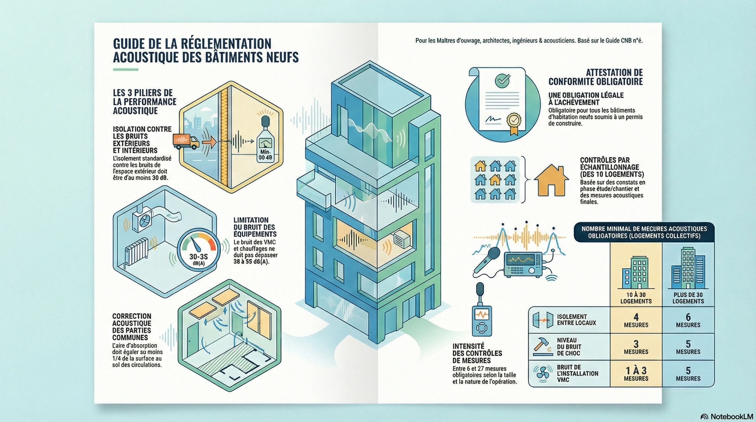 L'intervention pour les mesures réglementaires se fait lorsque les travaux sont achevés (les pré-requis et erreurs habituelles). Ce qu'il faut retenir, c'est que les mesures seront effectuées sur les cas les plus défavorables. Une bonne mise en œuvre est donc nécessaire sur toute l'opération.
