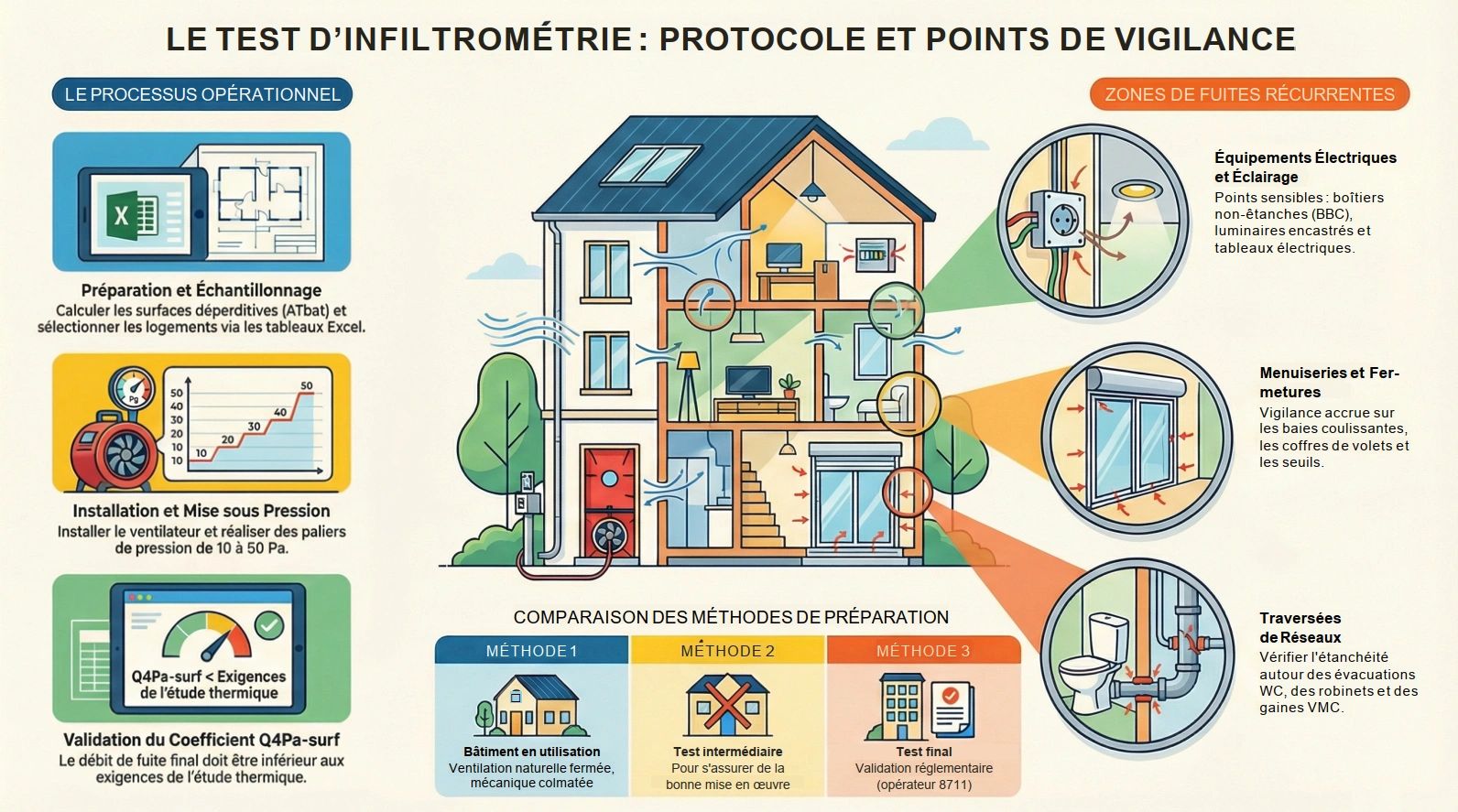 Retrouvez ici la liste des pré-requis et des fuites récurrentes afin de vous assurer que vous n'avez rien omis de traiter avant l'intervention de l'opérateur 8711 (perméabilité à l'air).